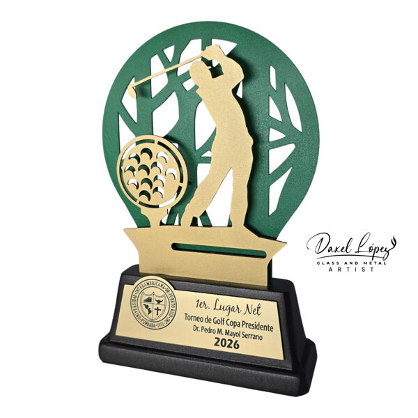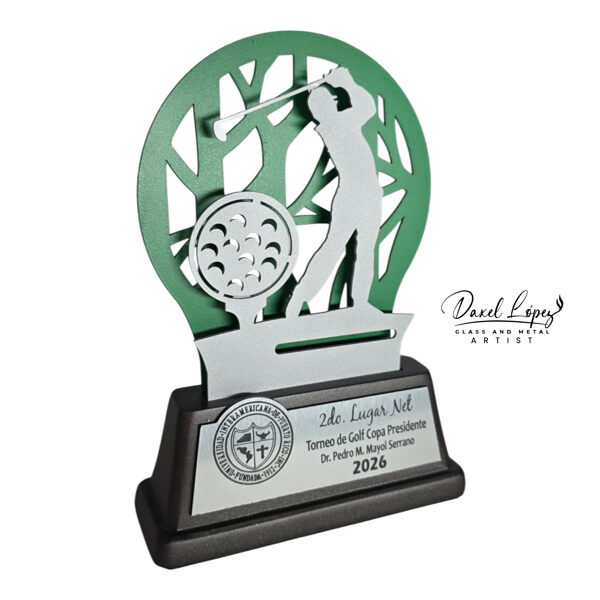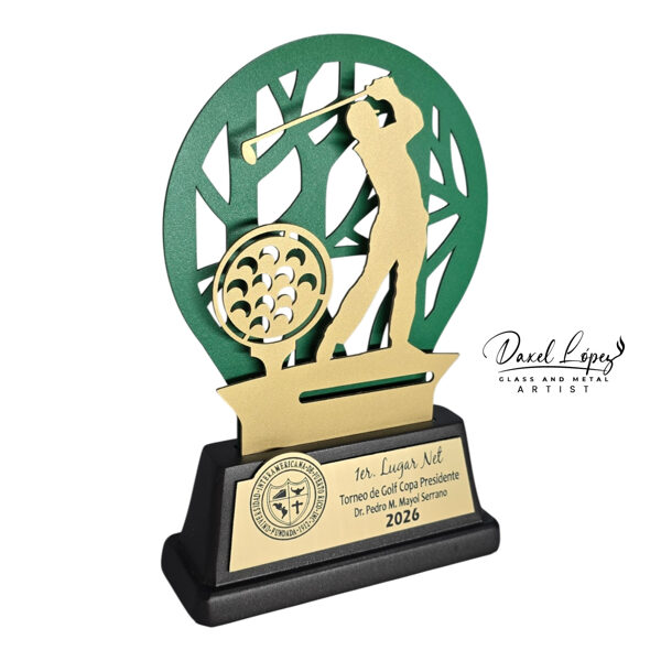 Celebrate excellence on the course with our premium cut metal golf trophies, designed to combine modern aesthetics with precision craftsmanship. Each award features a dynamic golfer silhouette layered over a stylized circular backdrop, creating depth and visual impact from every angle.