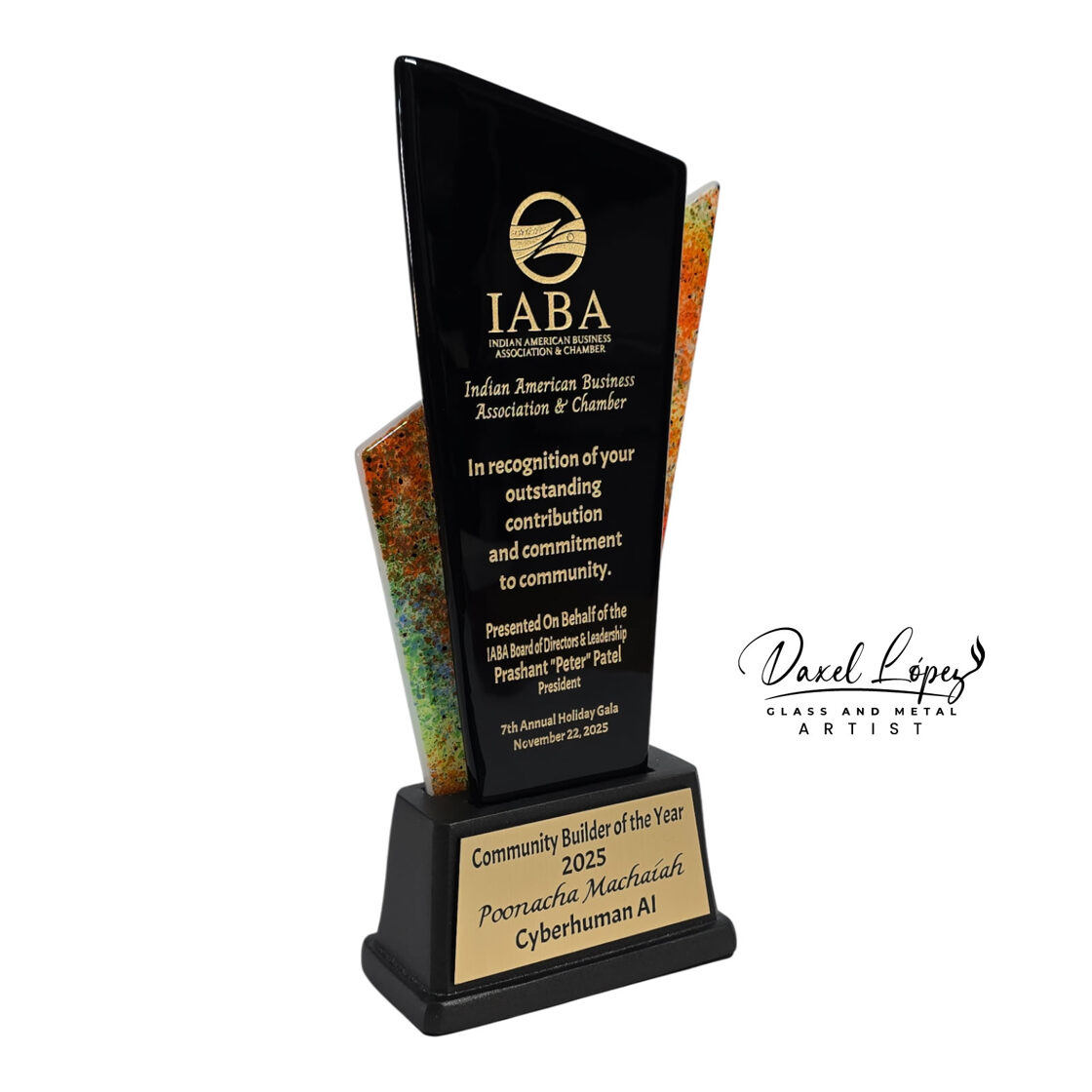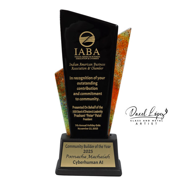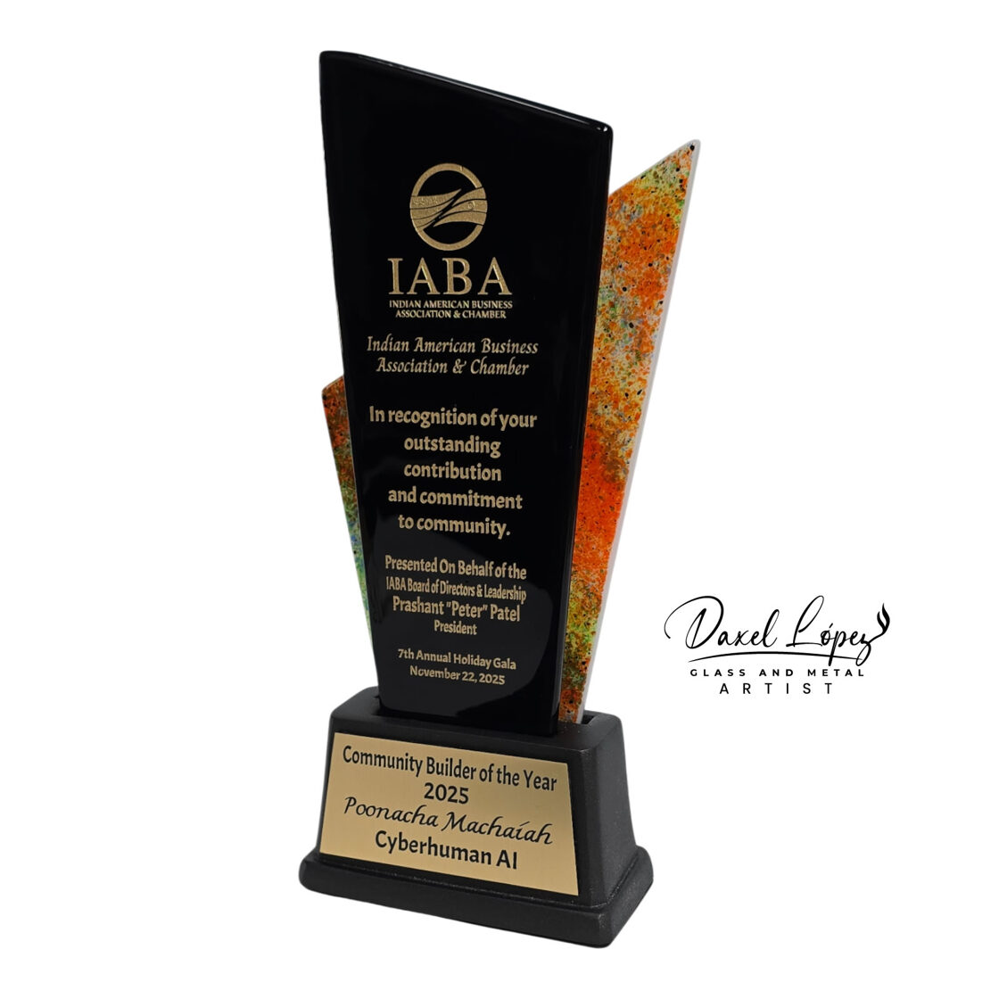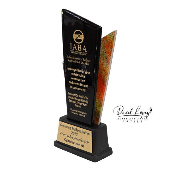 Handmade by artist Daxel López, this award embodies excellence, commitment, and the spirit of community building at the heart of the Indian American Business Association & Chamber.
