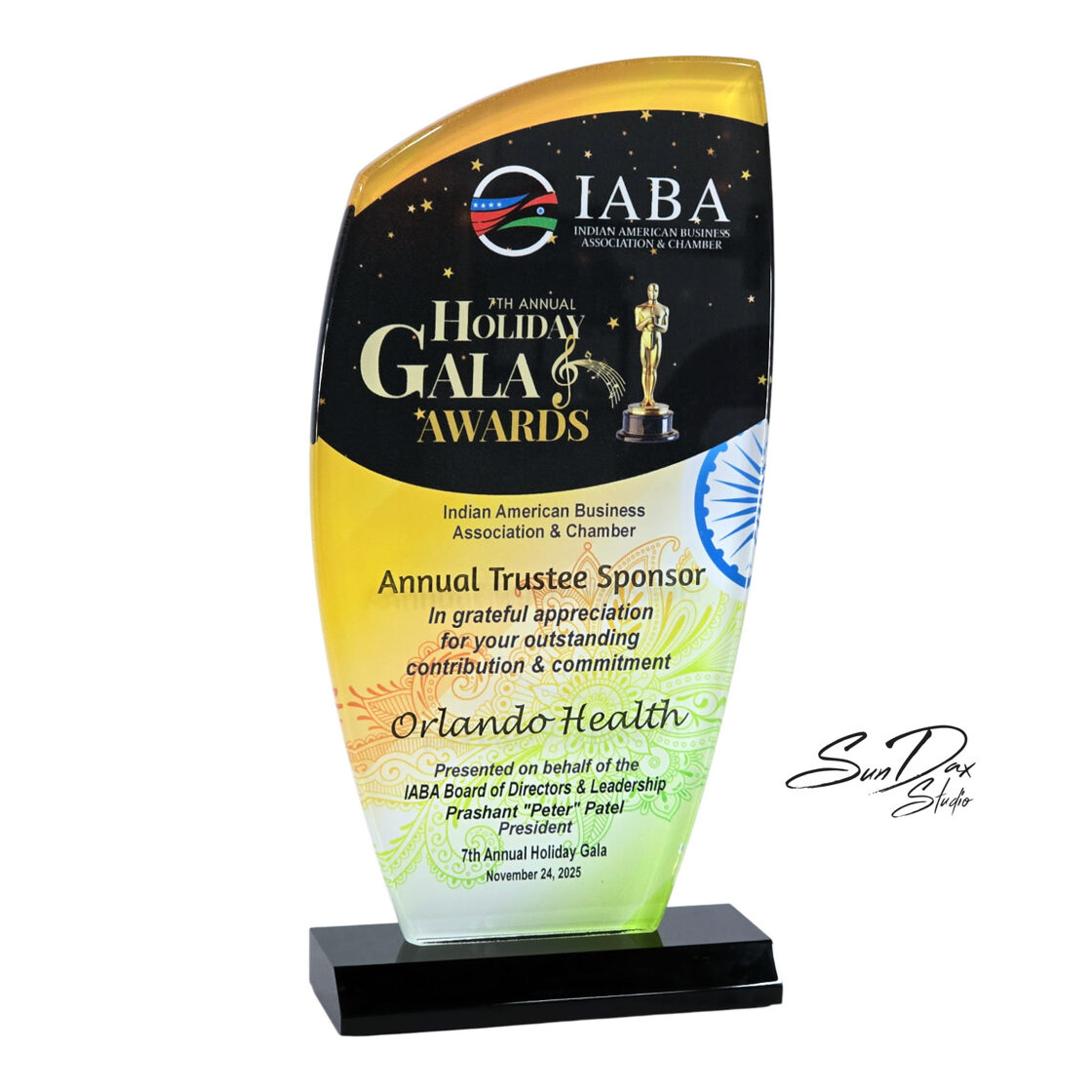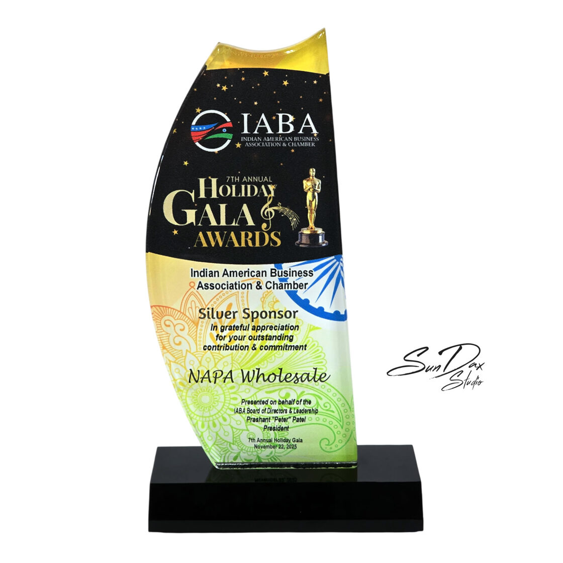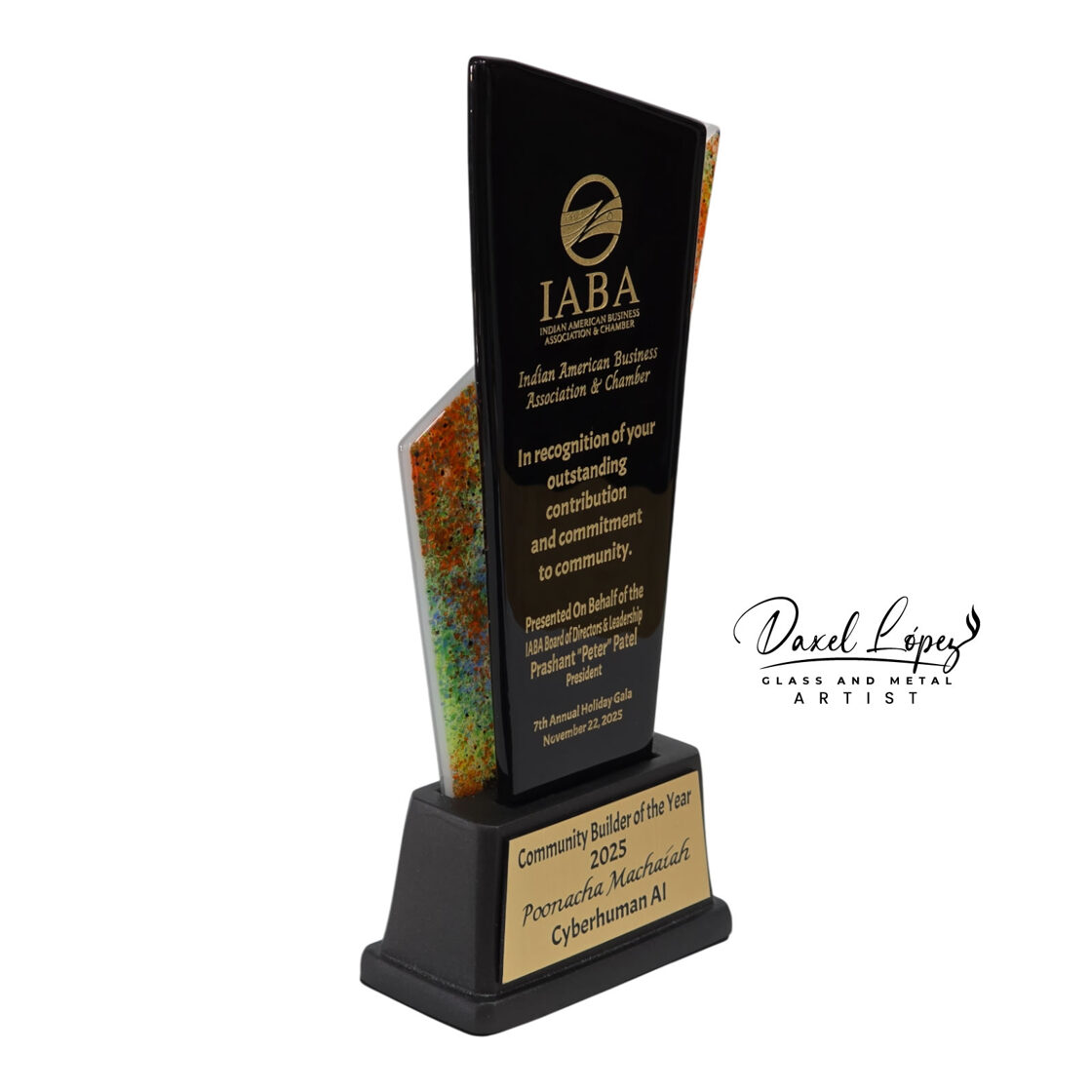 Handmade by artist Daxel López, this award embodies excellence, commitment, and the spirit of community building at the heart of the Indian American Business Association & Chamber.