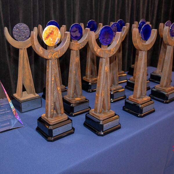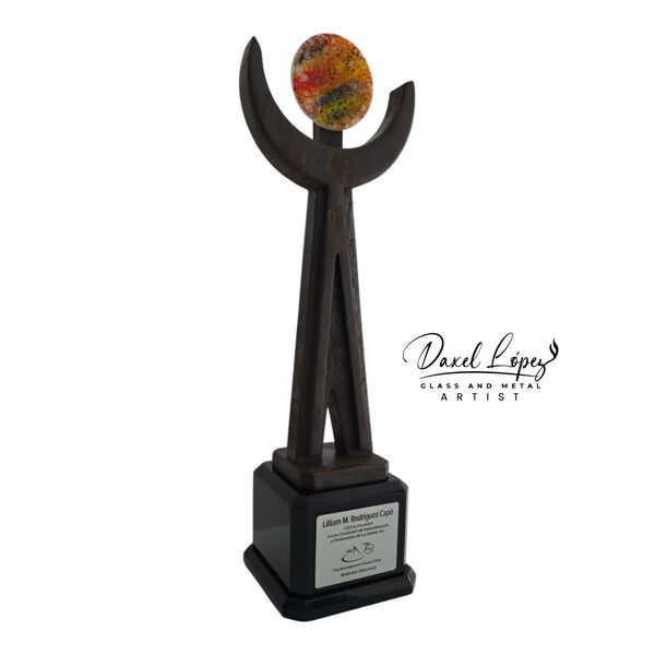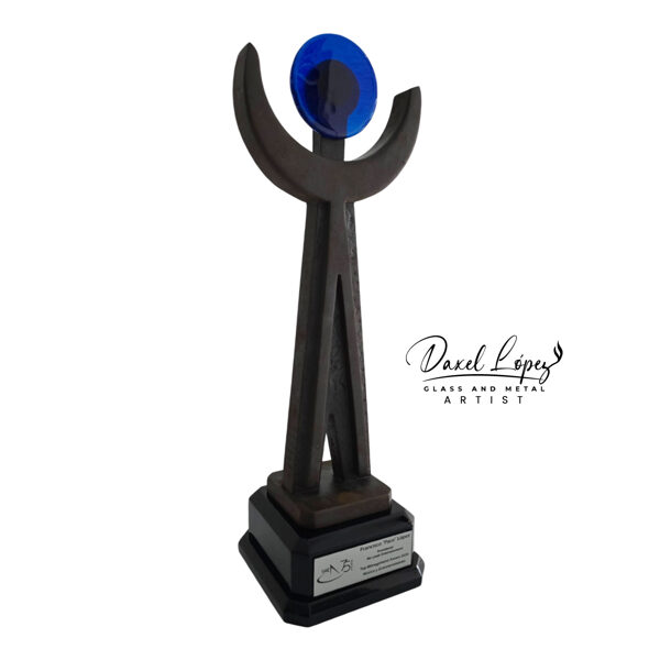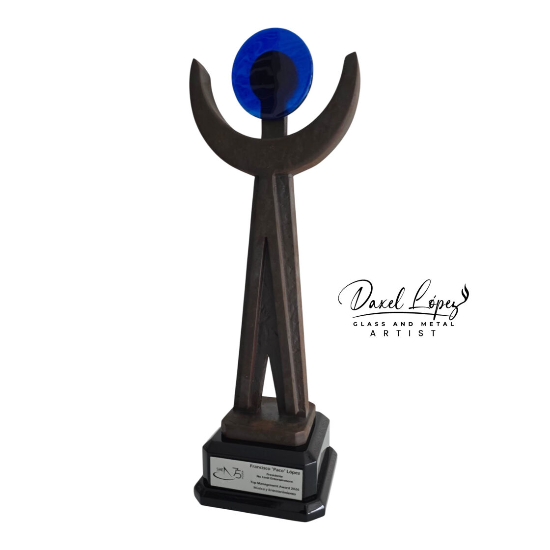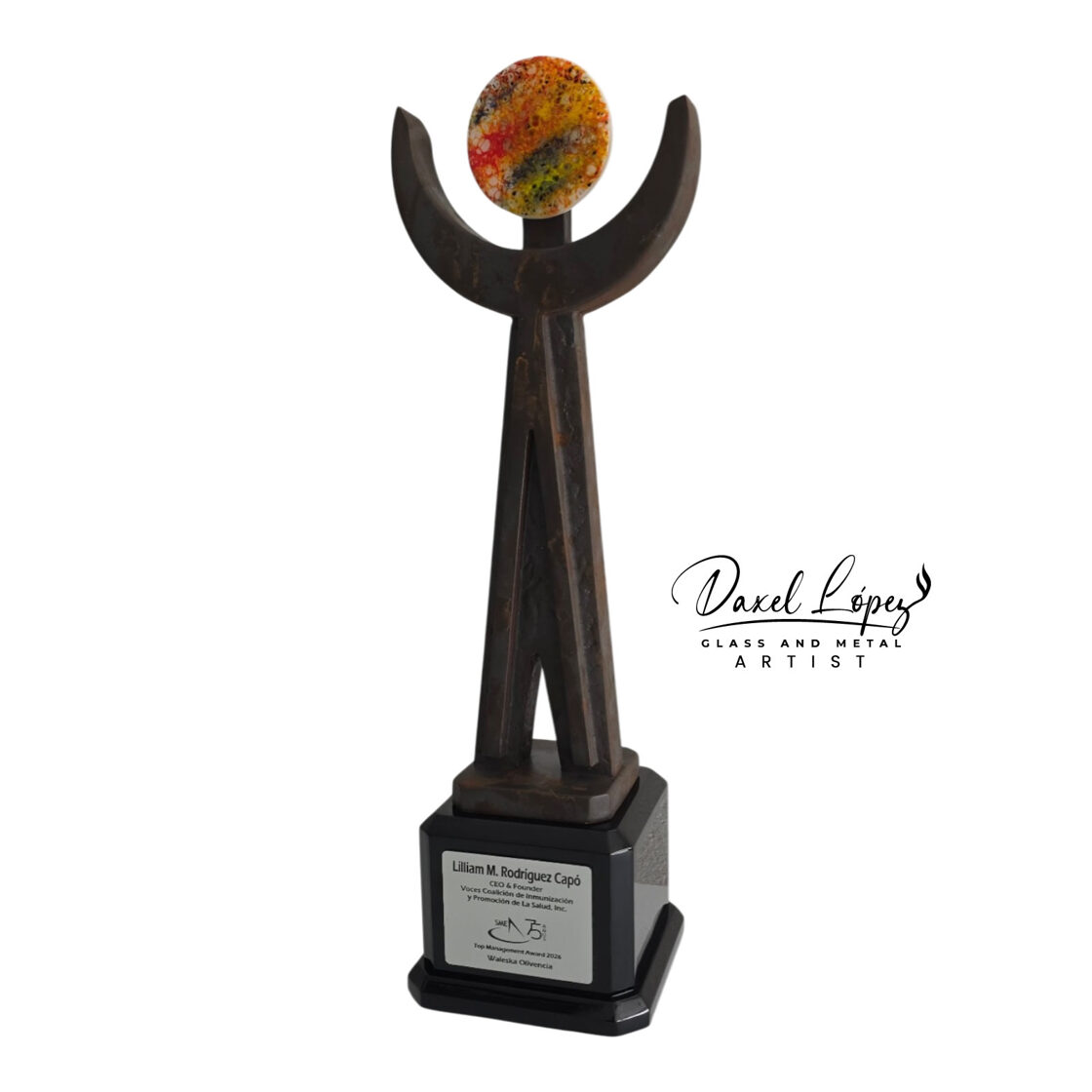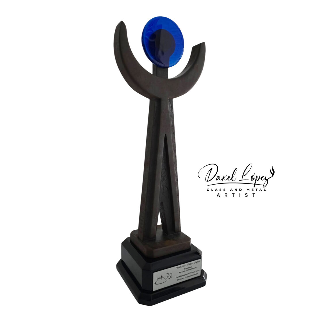 Each piece is individually cast and finished, preserving subtle textures and variations that make every award unique. The integration of glass introduces light and color, transforming the sculpture as it interacts with its surroundings—just as great leaders influence and shape their environment.